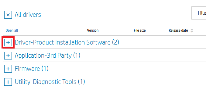 - Since, we want to download the driver, click on the ‘Plus’ sign in-front of the ‘Driver Product Installation Software’ option.